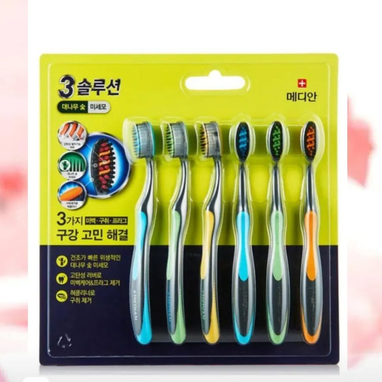 پک ۶ عددی مسواک حل کننده مشکلات سه گانه دهان و لثه و رفع بوی بد دهان و سفید کننده دندان ها، بسیار با کیفیت از برند median