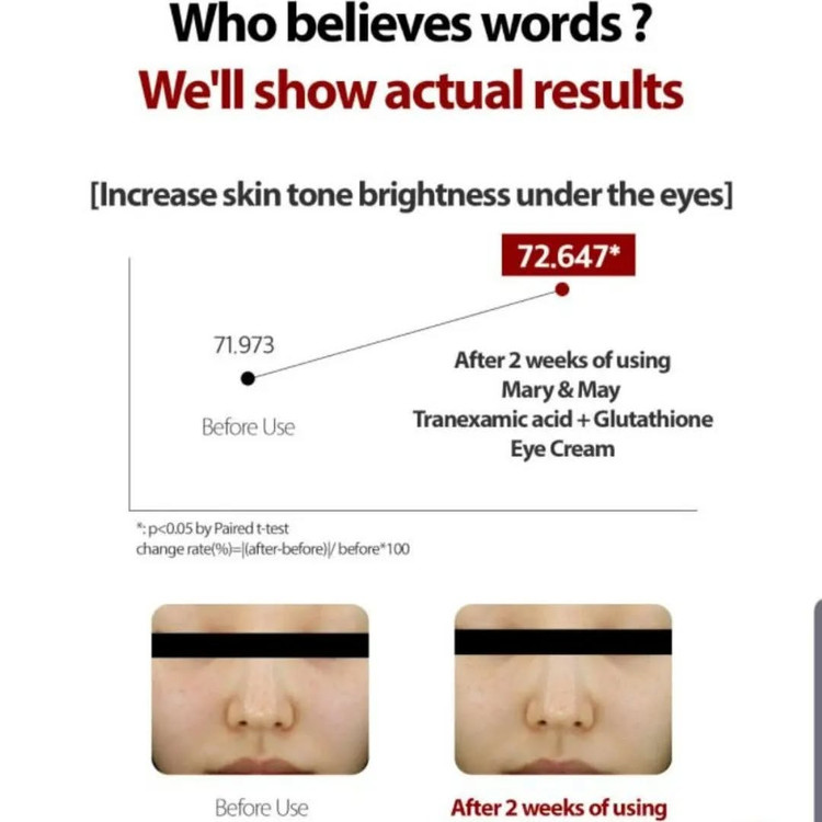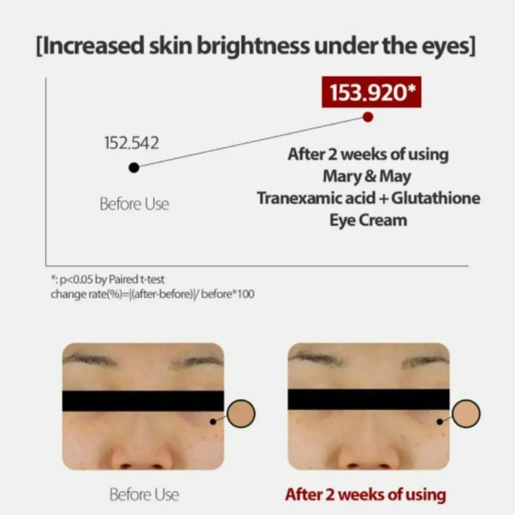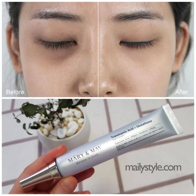 کرم دور چشم ضد چروک و روشن کننده ترانگزمیک اسید و گلوتاتیون از برند mary & may