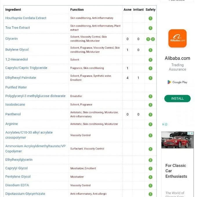 عصاره Guttuinia که یکی از اجزای اصلی کرم است، حاوی غلظت بالایی از کورستین است که به نوبه خود به ترمیم پوست و پاکسازی آن کمک می کند. خود گیاه گوتوینیا از زمان های قدیم به عنوان یک گیاه دارویی که برای بیماری های پوستی استفاده می شود شناخته شده است. درخت چای در برابر باکتری ها، قارچ ها و التهاب موثر است، به بهبود وضعیت پوست با زخم ها و سایر مشکلات کمک می کند. بنابراین، درخت چای از زمان های قدیم به عنوان یک ضد عفونی کننده طبیعی ضد باکتری استفاده می شده است.