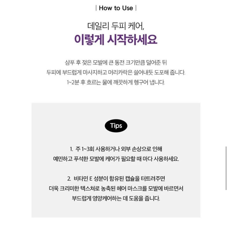 نحوه استفاده مراقبت روزانه از پوست سر، اینگونه شروع کنید بعد از شامپو کردن، مقدار زیادی به اندازه یک سکه روی موهای خیس مالیده و به آرامی روی پوست سر ماساژ دهید و روی ساقه موها هم بمالید. پس از ۱ الی ۲ دقیقه، کاملاً زیر آب جاری بشویید.