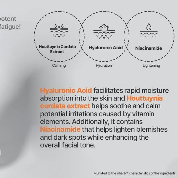 حاوی ترکیبات دو عملکردی (ضد پیری و سفید کننده) تایید شده: نیاسینامید، آدنوزین و غیره. • فرمول بهینه تعادل pH پایین: حفظ سطح pH 4.5 تا 6.5 پوست و تعادل pH پایین به آرام کردن، جوانسازی و صاف کردن پوست خشن و حساس شما با اثر مرطوب کنندگی شدید کمک می کند. •